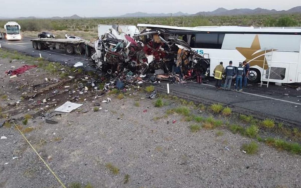 El percance ocurrió alrededor de las 5:00 horas en el kilómetro 37 del tramo carretero de San Luis Río Colorado a Sonoyta, cuando el autobús de la línea “Interbus” se impactó por alcance a un tráiler, mismo que se estrelló contra un tractocamión.