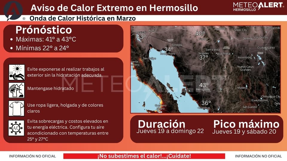 Alerta por «temperaturas récord» en Hermosillo; advierten riesgo de golpes de calor