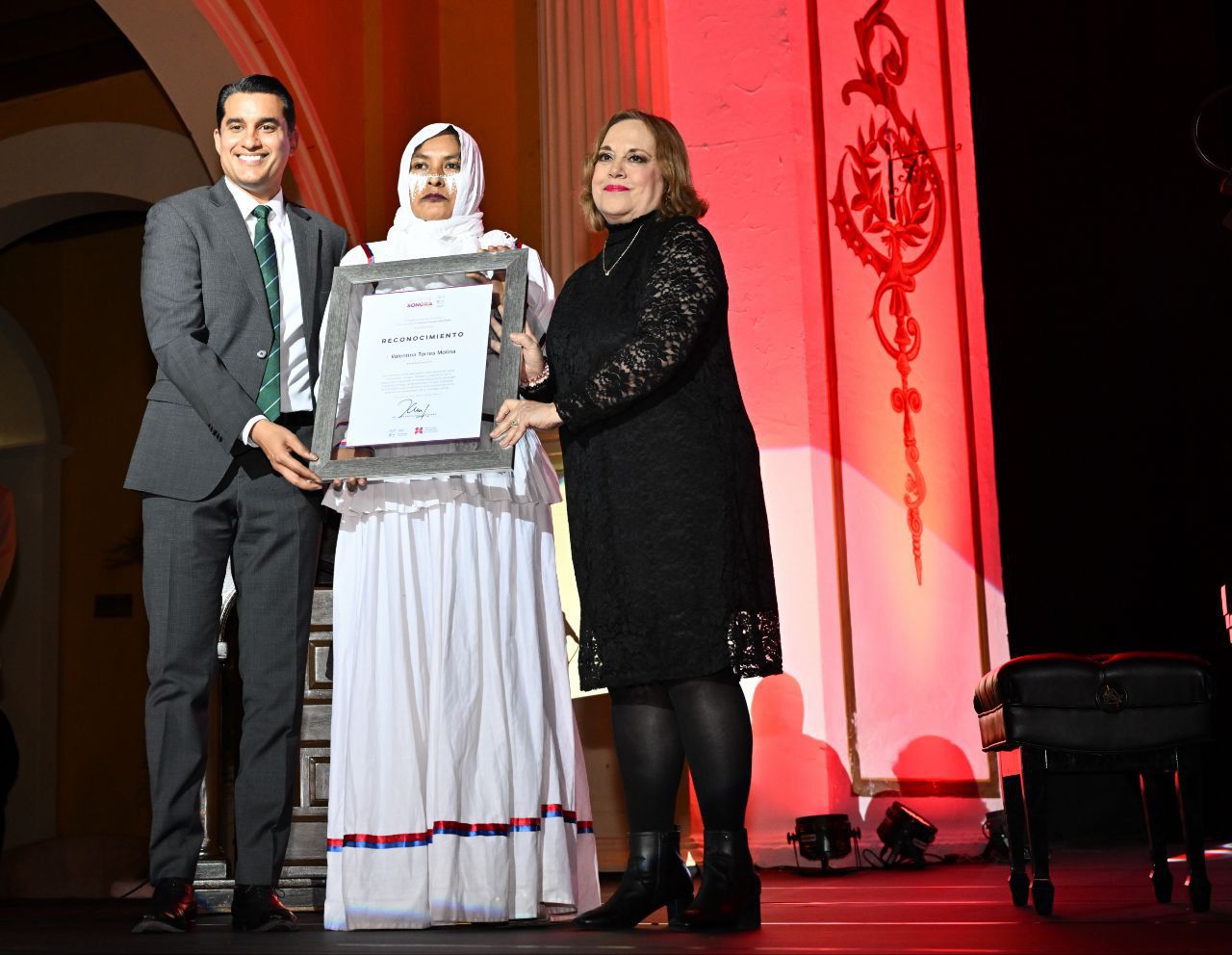 Durante la ceremonia inaugural se entregó el Reconocimiento a la Enseñanza Musical a Valentina Torres Molina, promotora cultural de la comunidad comca’ac, por su labor formativa y su compromiso con la preservación cultural desde el ámbito comunitario.