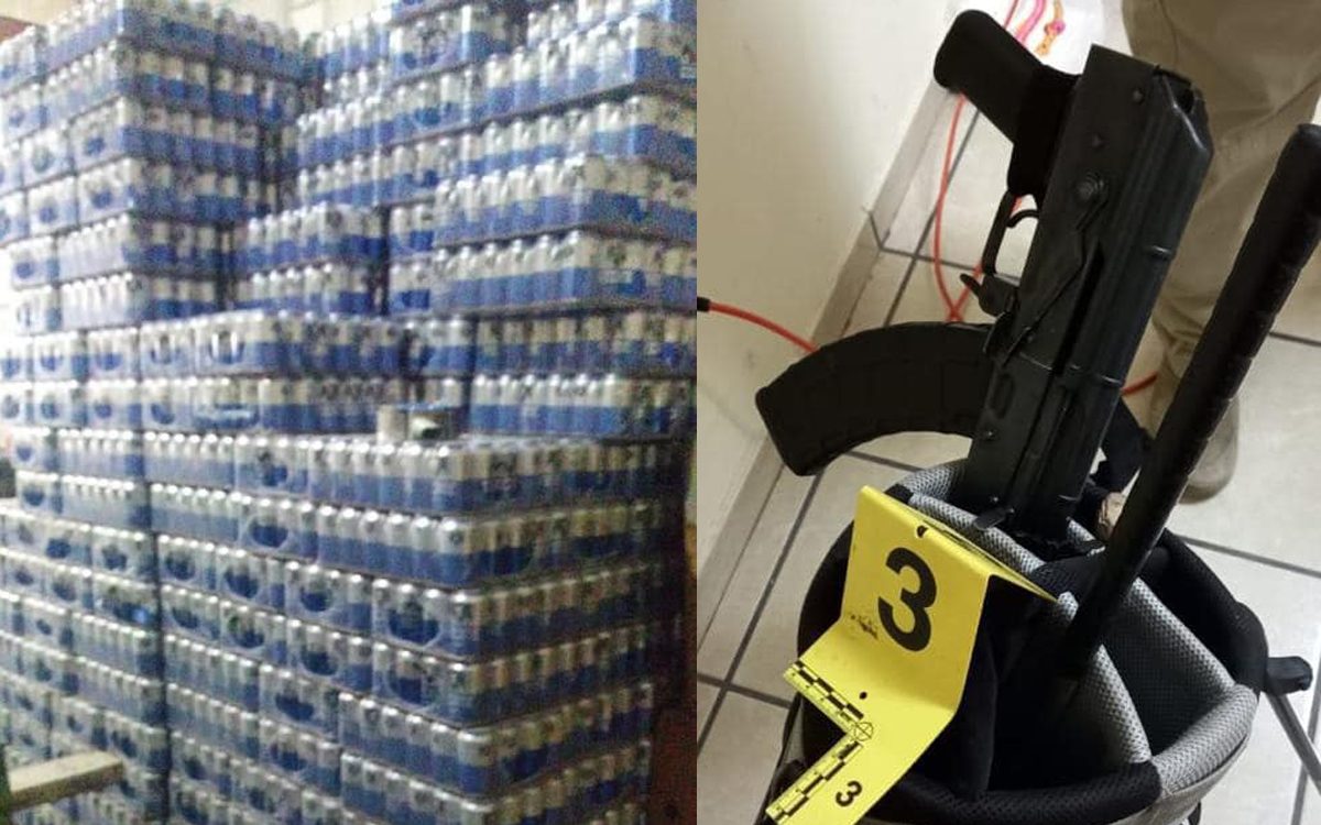 En el operativo se aseguraron 9 mil 216 latas de cerveza, 48 botellas «caguamas», además de un arma de fuego de grueso calibre y cuatro cartuchos útiles