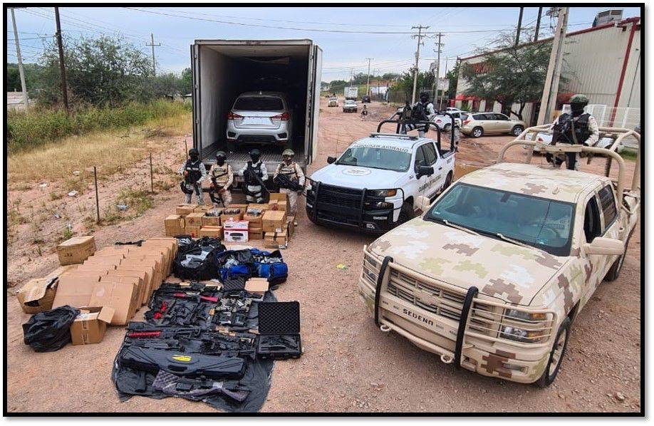 Elementos del Ejército Mexicano junto con la Guardia Nacional, aseguraron en Sonora un tractocamión, en cuyo interior encontraron tres vehículos, armas y miles de cartuchos y cargadores para diferentes calibres.