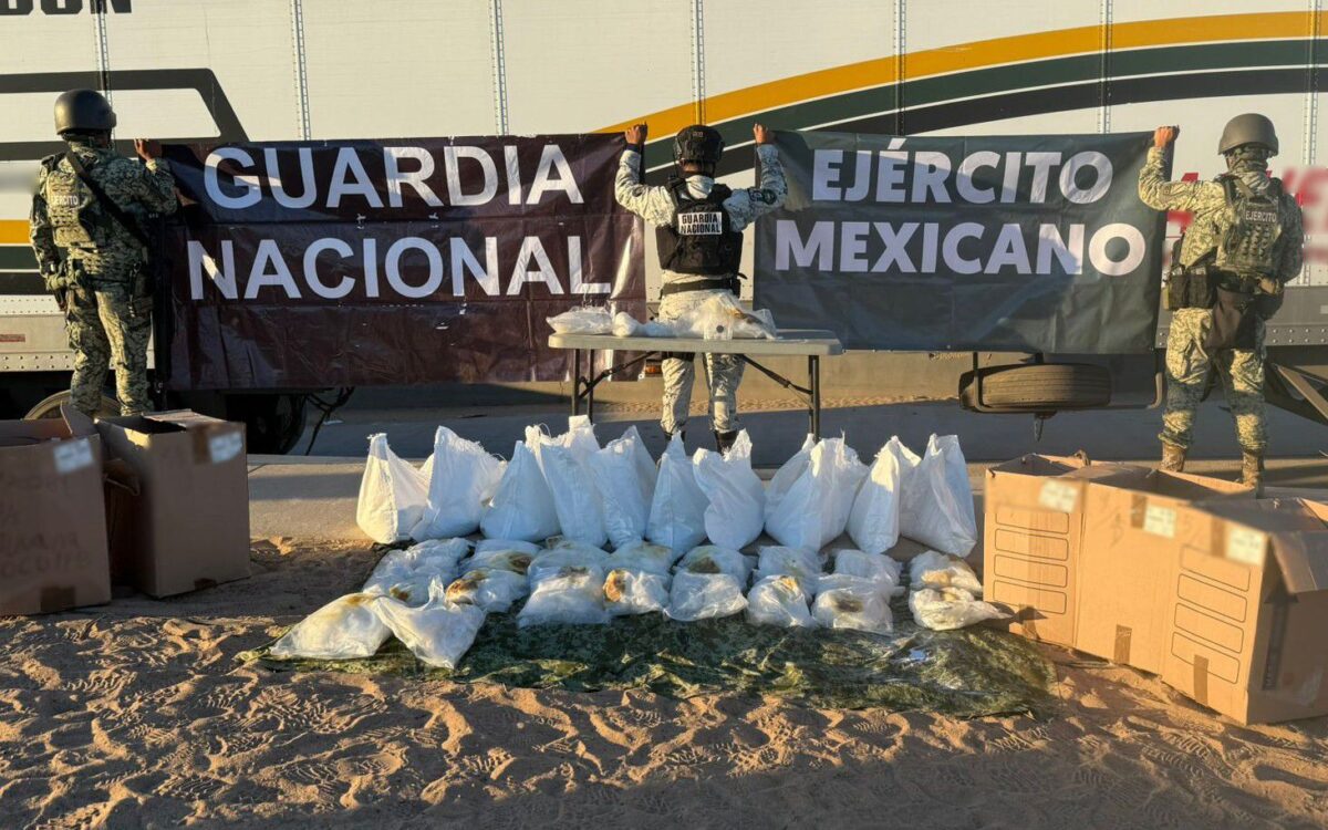 El segundo aseguramiento ocurrió en el punto de inspección estratégico de San Luis Río Colorado, donde el conductor de un tractocamión quedó detenido tras asegurarle 42 kilogramos de metanfetaminas que transportaba en cajas de cartón.