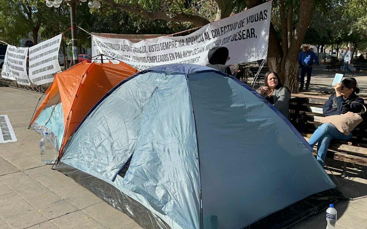 Mujeres viudas de elementos de la policía caídos en el cumplimiento de su deber, fueron recibidas esta mañana por el gobernador Alfonso Durazo Montaño luego de haber dormido frente a Palacio de Gobierno.