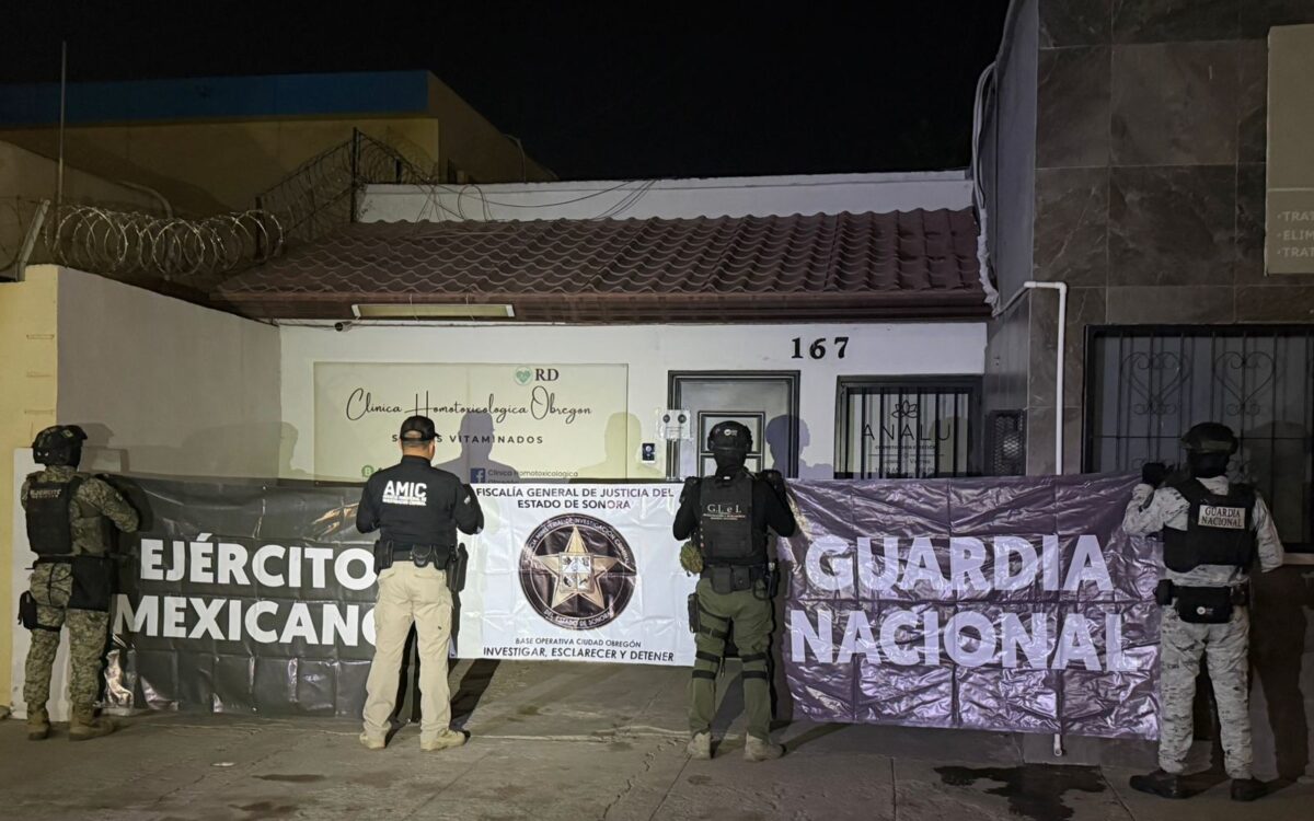 La Fiscalía General de Justicia del Estado de Sonora (FGJES) realizó un cateo en un inmueble de la colonia Centro de Ciudad Obregón, donde aseguró soluciones intravenosas e indicios relacionados con la investigación por las ocho muertes asociadas a la aplicación de «sueros vitaminados» en Hermosillo.