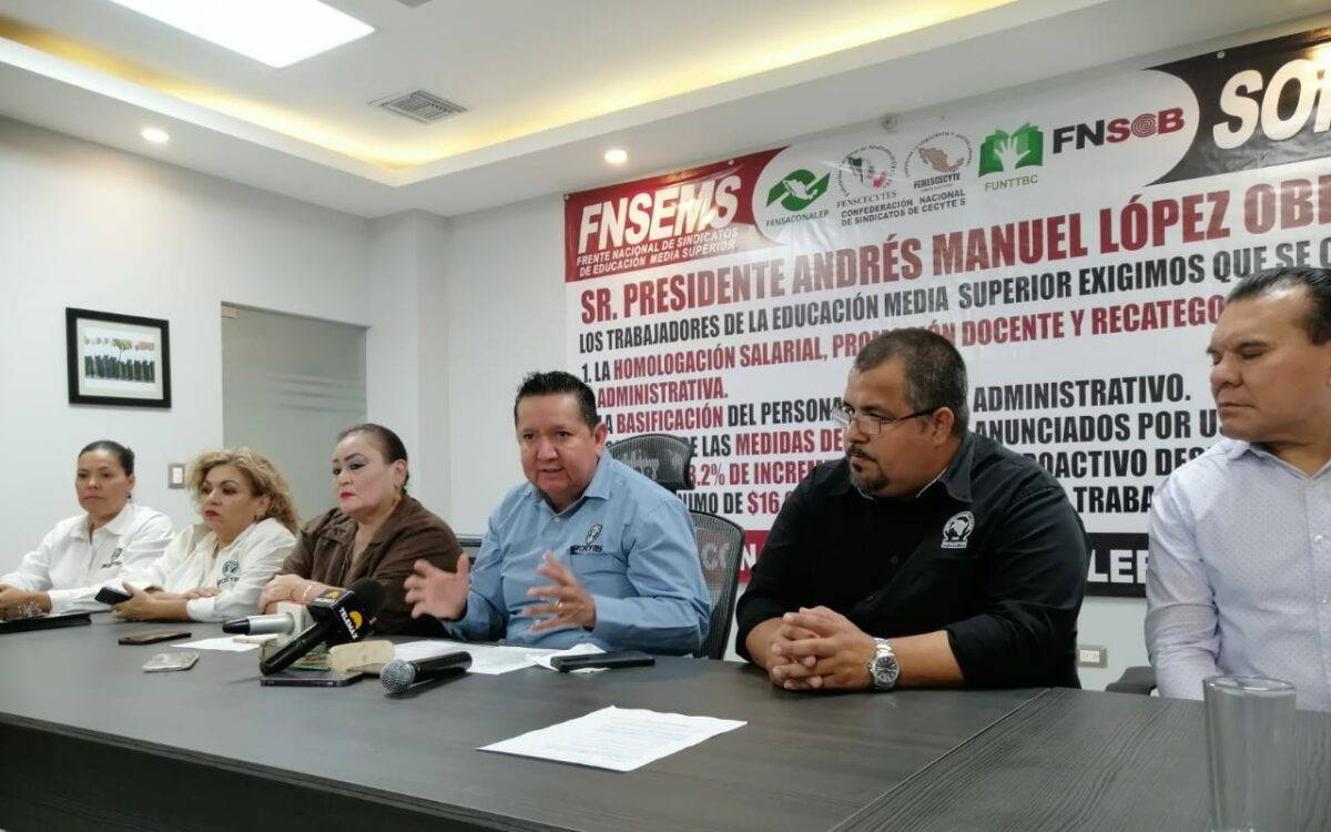 Ramón Gastélum Lerma, secretario del Sindicato de Trabajadores de Cecytes, explicó que el reclamo es que a un trabajo igual debe haber un salario igual, pero en la educación media superior hay maestros de Cbtis que ganan mucho más que los maestros de subsistemas como Cecytes, Conalep y Cobach.