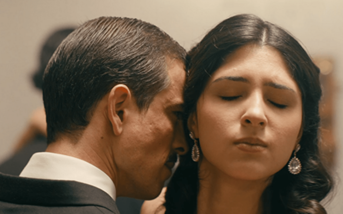 mayores luces cuando este gran esfuerzo no se ve coartado por nada más. Mayor ejemplo los cinco minutos en pantalla que tiene la recreación del baile de la leyenda, donde Linda (María Pavlovich) se topa con un joven, elegante y vigoroso Diablo (Jorge Luis Moreno) con quien goza de una siniestra e inquietante al tiempo que seductora charla. Rendón le confiere a la escena brillo propio, una cadencia, su ir y venir propio, como el de una llama nutriéndose de un aire tenso, dejándonos a la expectativa de todos los detalles nuevos que podemos gozar de la historia mientras que esta acierta los golpes que ya sabemos llegarán a su objetivo. La misma sensibilidad que se tuvo con la representación de la escena, hace destacar los papeles de los dos actores principales de la escena, Pavlovich por su parte desliza la mirada inocente de una muchacha ilusionada y la transformación de su rostro va generando su interacción con el Diablo; Moreno explota a su personaje como si ya nadie tuviera la oportunidad de interpretarlo, lo habita y lo matiza siendo la sutileza de su semblante su mayor navaja suiza, desde lo galante y pícaro hasta lo lastimado e incluso queer, dotándole a su interpretación una apariencia inolvidable.