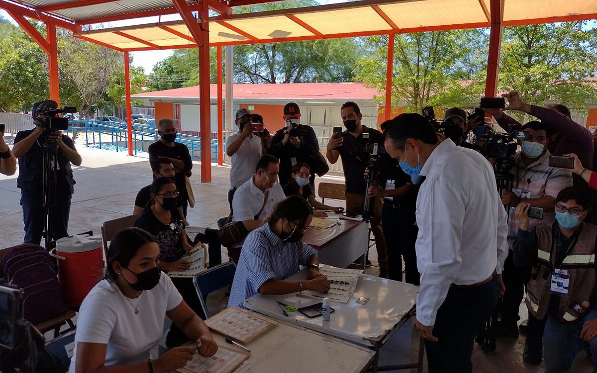 El candidato de la Alianza Va por Sonora a la alcaldía de Hermosillo, Antonio Astiazarán Gutiérrez emitió su voto junto a su familia en la casilla ubicada en la colonia Loma Linda.
