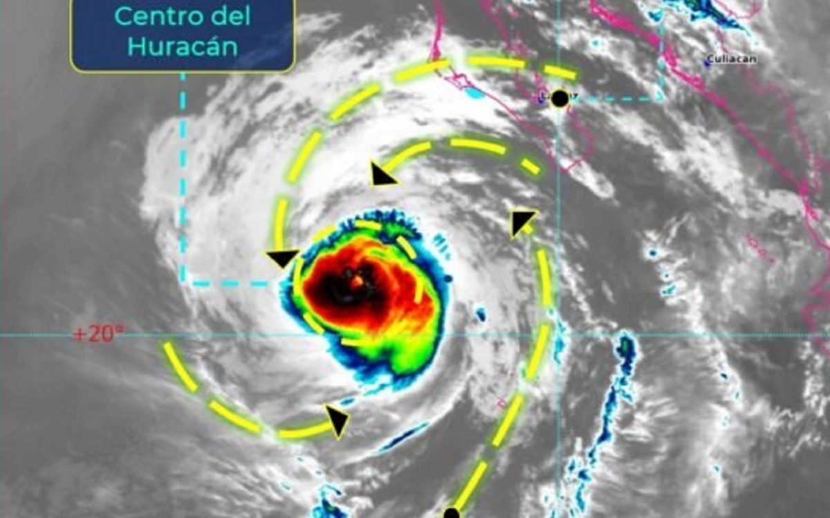 Advirtió que el fenómeno meteorológico sostiene vientos de 150 km/h y rachas de hasta 185 km/H, con un desplazamiento hacia el oeste de 22 km/h.