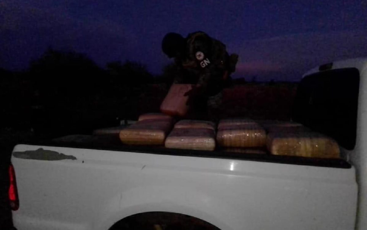 En camino de terracería en altar, guardias nacionales aseguran más de media tonelada de marihuana