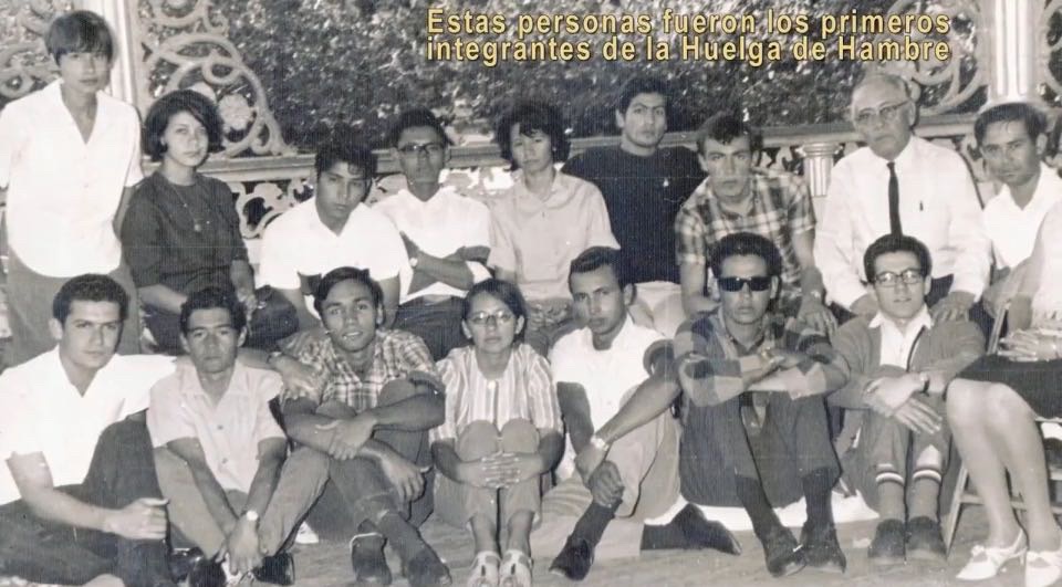 Grata sorpresa para mí fue, recientemente, mirar la fotografía de los huelguistas de hambre, en el kiosco de la Plaza Zaragoza, del movimiento estudiantil y popular de 1967 donde ¡aparece al lado de alumnos de la escuela que había fundado 14 años antes: ….!