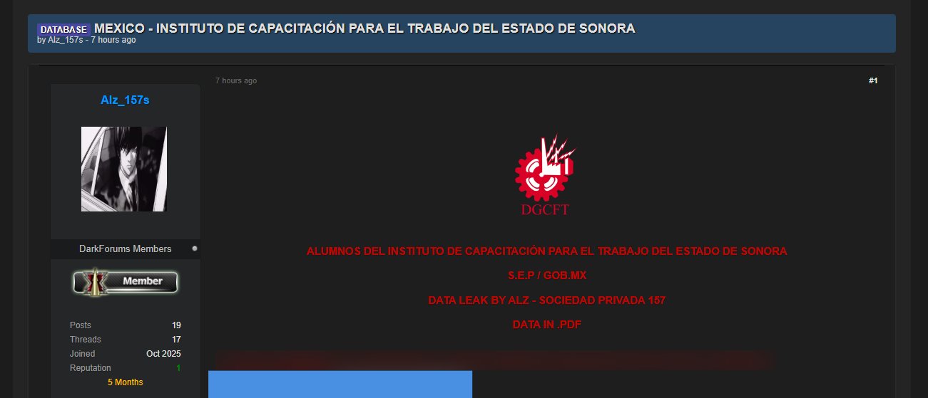 *Marzo 2026. ICATSON. Robaron datos de más de 125,000 alumnos, incluyendo CURP, domicilios, teléfonos e incluso tipos de sangre.