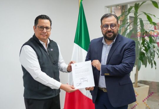 Javier Rábago Romero, representante de la Sección 28 del SNTE; Raymundo Lagarda Borbón, secretario general de la Sección 54 del SNTE; Ario Bojórquez Egurrola, presidente de Canaco Hermosillo; Miguel Ángel Partida Ruiz, director general de administración y finanzas de la SEC.