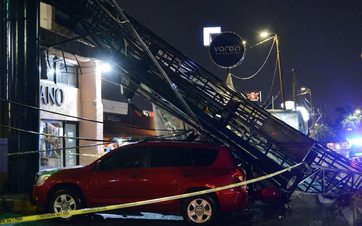 “Por ejemplo, en el caso de uno de los espectaculares que cayó y daño algunos vehículos y con el seguro que pudo dar respuesta por estos daños”.