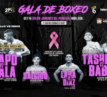 GeneralPrincipalesViernes de BoxEditorial PPDoctubre 15, 2020Por Redacción Las dos peleas estelares del evento que se realizará en Hermosillo serán entre “Chapo” Castro, “Camaleón” Ayala, “Tashiro”...