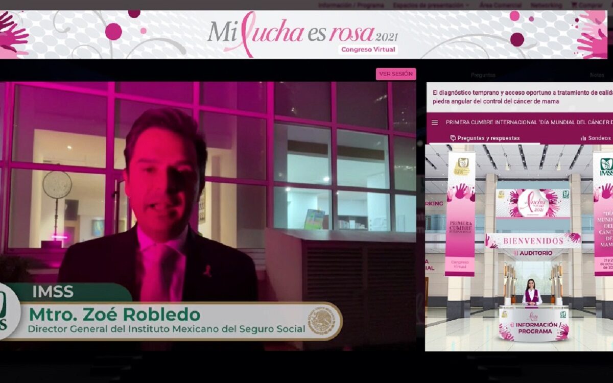 Al inaugurar la 1ª Cumbre Internacional “Mi Lucha es Rosa 2021”, organizada por Fundación IMSS y que se realiza de manera virtual el 21 y 22 de octubre en la página http://fimssrosa2021.mx/, destacó que este congreso es una muestra de humanismo, fraternidad y corresponsabilidad en la lucha contra esta enfermedad, primera causa de muerte por cáncer en mujeres de 25 años o más.