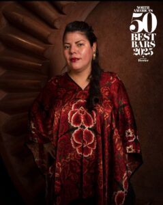 En 2025 se convirtió en la primera mexicana en ganar el Altos Bartenders’ Bartender Award, uno de los galardones más prestigiosos del continente; desde su bar Tlecān, ha construido una propuesta que celebra destilados como el mezcal, el bacanora, el sotol y la raicilla, combinándolos con ingredientes autóctonos para crear cocteles de identidad profundamente mexicana.