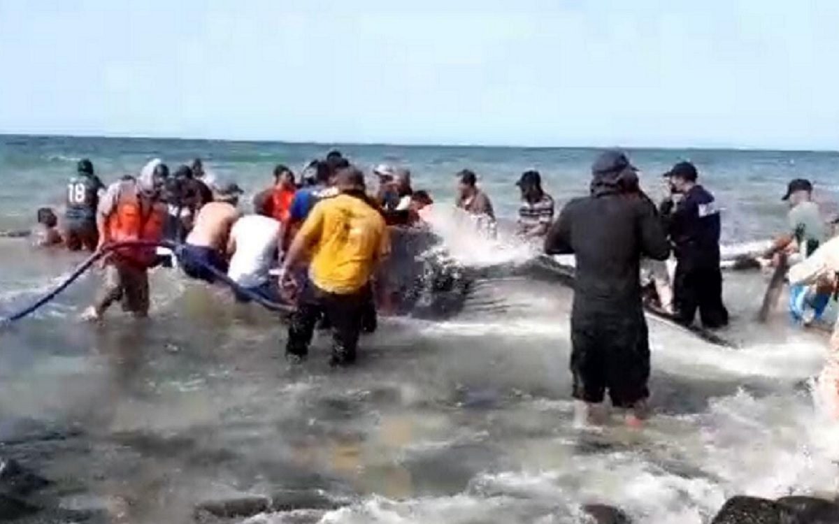 Logran rescate de ballena varada en Puerto Peñasco