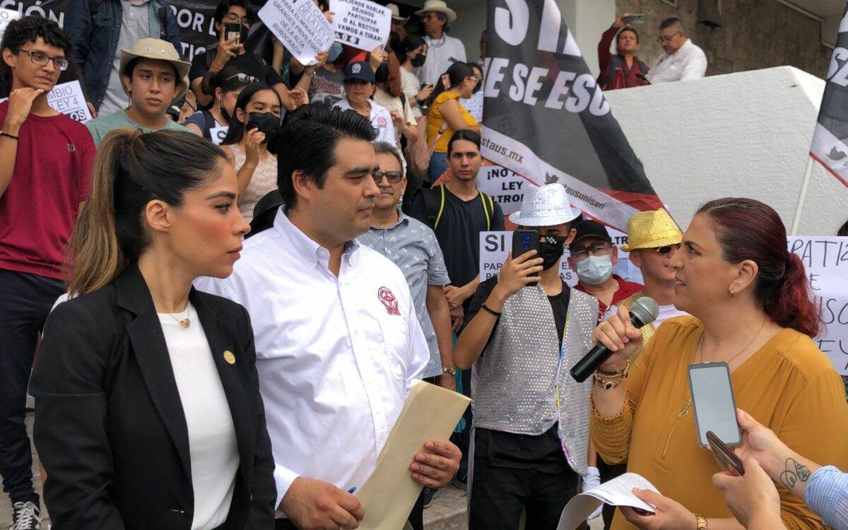 En las afueras del recinto legislativo, el dirigente del Sindicato de Trabajadores Académicos de la UNISON (STAUS), Juan Díaz Hilton, señaló que buscan democratizar las decisiones universitarios.