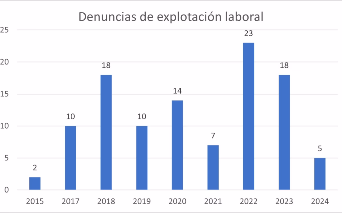 En 2025 se recibieron dos denuncias; en 2016 no hubo; en 2017 fueron 10; en 2018 son 18; en 2019 otras 10; en el 2020 hay 14; en el 2021 son siete; en 2022 fueron 23; en el 2023 18; en el 2024 son cinco; y al corte de abril del 2025 no había ninguna.