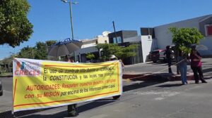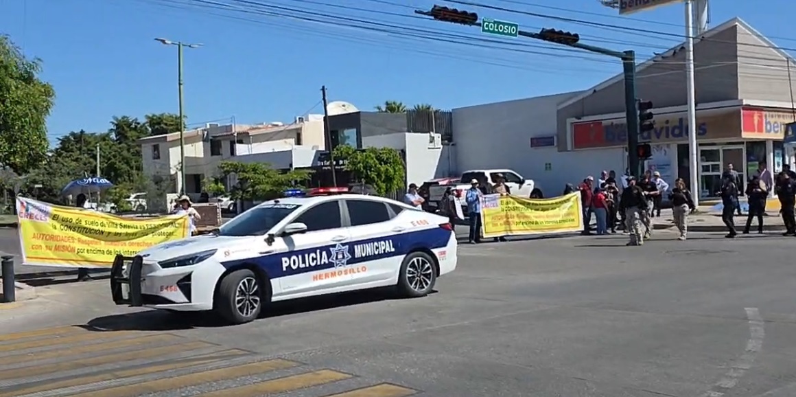 Desplegaron dos enormes lonas con la denuncia directa para el Ayuntamiento de Hermosillo. “El uso de suelo de Villa Satélite es Residencial, la constitución y las leyes nos protegen; Autoridades: respeten nuestros derechos…”