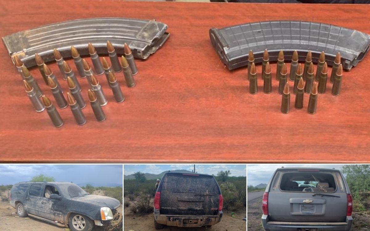 En operativos efectuados el martes por los caminos de terracería, aproximadamente a 82 kilómetros al norte de la carretera al Arenoso y entronque con las Calabazas del municipio de Pitiquito se localizó un vehículo tipo vagoneta, GMC, línea Yukon en aparte estado de abandono, donde había 8 cargadores y aproximadamente 175 cartuchos útiles.