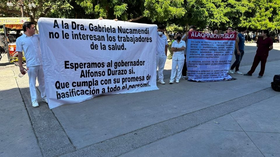 Trabajadores del Hospital General de Especialidades de Hermosillo se manifestaron este jueves en protesta por la supuesta falta de basificaciones al interior de la Secretaría de Salud.