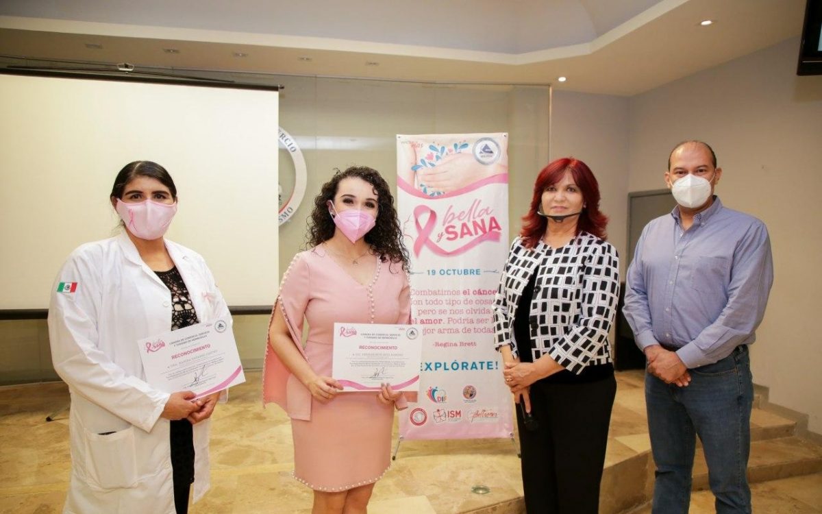 Al finalizar la conferencia, el presidente del organismo empresarial, Ario Bojórquez, y la vicepresidenta de Mujeres Empresarias, Martha Isela Islas, entregaron un reconocimiento a ambas expositoras por su participación, con lo que quedó formalmente clausurado el programa “Bella y Sana”.