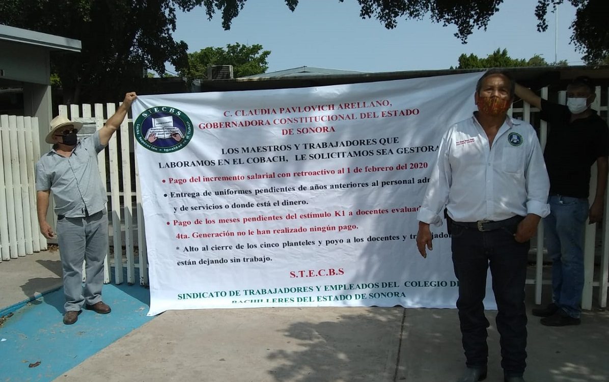 Trabajadores del Cobach en Sonora continúan con sus protestas por el nulo avance en sus exigencias sindicales para que les paguen aumentos salariales y bonos.