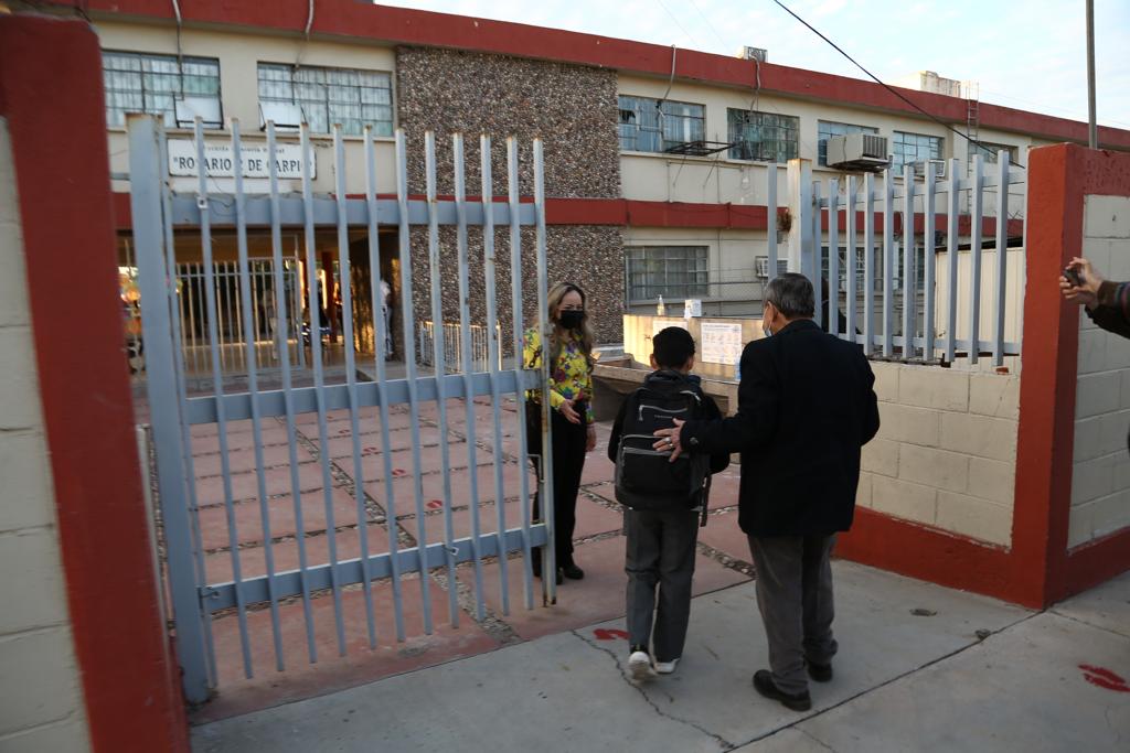 En nuestro estado desde el lunes los niños se levantaron muy temprano y todavía ojos adormilados entraron uno a uno por las puertas de los planteles donde los profesores han instalado de manera permanente filtros de revisión sanitaria. Ahí vigilan que todo alumno que ingresa al plantel porte su cubrebocas, además hay quien les toma la temperatura y les ponen una gota de gel anti bacterial en sus manitas.