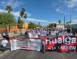 «¡Porque vivos se los llevaron, vivos los queremos!» y «¡Ayotzin vive, la lucha sigue!», fueron algunas consignas coreadas en esta marcha pacífica que culminó en el Monumento a la Revolución, donde se realizó un mitin.