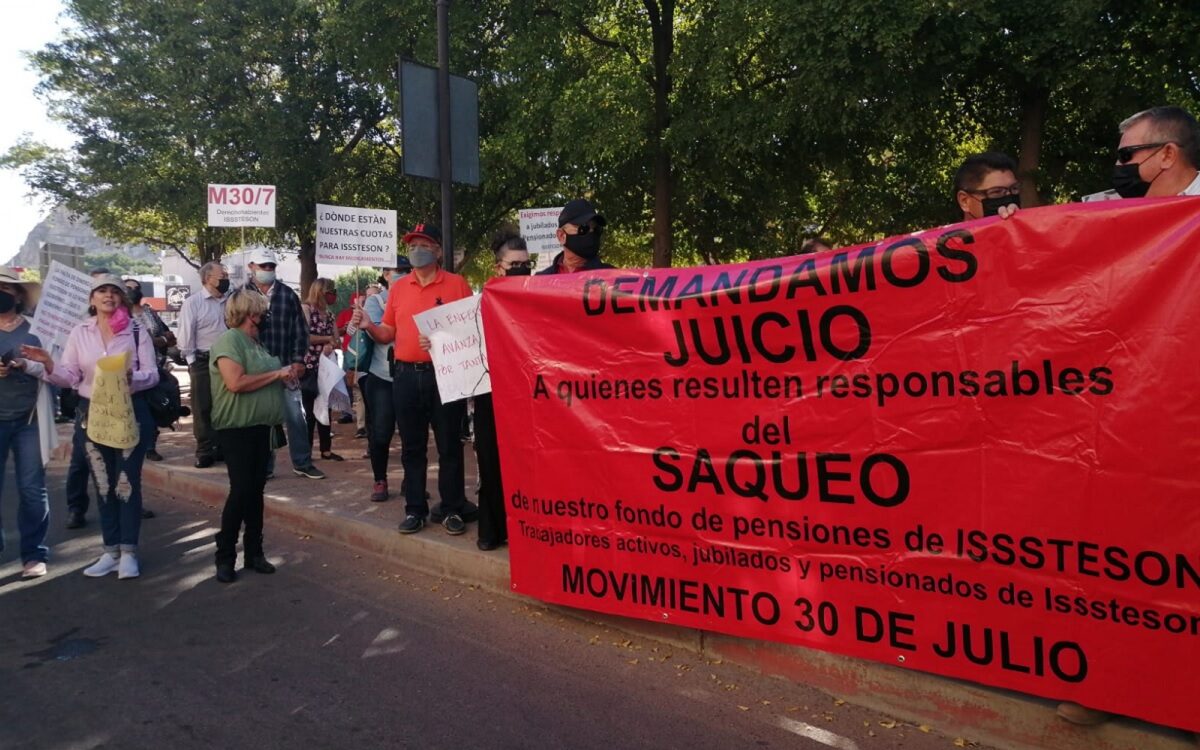 Pensionados y jubilados de ISSSTESON se manifestaron inconformes con los pagos diferidos que fueron anunciados y serán ejecutados por Jesús Acuña, director de esta institución.