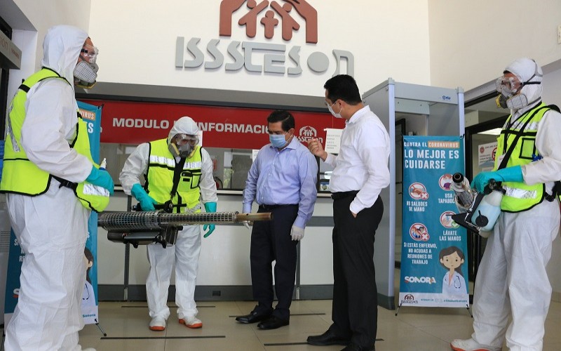 «Ya aplicamos sanitizante en los CIAS Norte, Sur y Centro en Hermosillo, así como en los módulos en Peñasco, Caborca, Magdalena y Santa Ana, y el plan abarca cubrir las mayores instalaciones posibles», expresó el Titular de Isssteson.