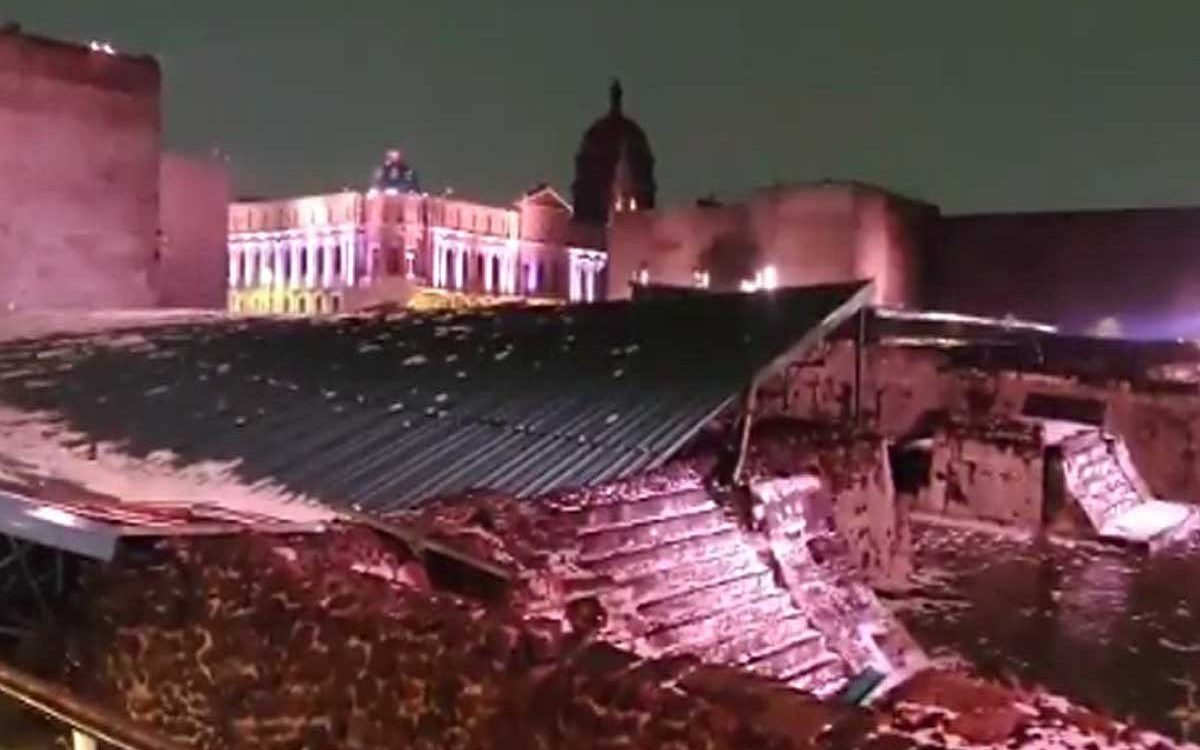 Se derrumba cobertura del Templo Mayor en la CDMX por intensa granizada