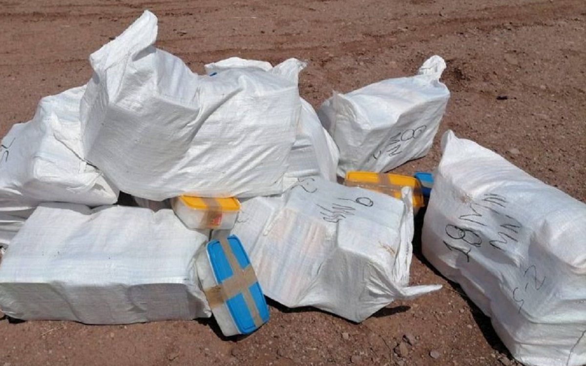 Al realizar patrullaje por esa zona, se percataron que estaban abandonados unos paquetes que contenían 543 kilos 197 gramos de metanfetamina y ocho kilos 238 gramos de fentanil en polvo, así como 40 mil pastillas de fentanilo con un peso de cuatro kilos 535 gramos, mismos que fueron puestos a disposición de las autoridades competentes.