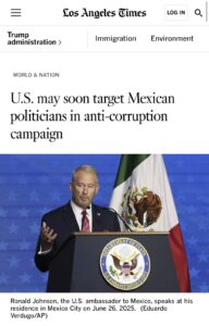 Las declaraciones surgen tras una publicación de Los Angeles Times, donde se advierte que la administración de Donald Trump prepararía una estrategia que iría más allá de la cancelación de visas, incluyendo posibles acusaciones en tribunales federales contra políticos mexicanos.