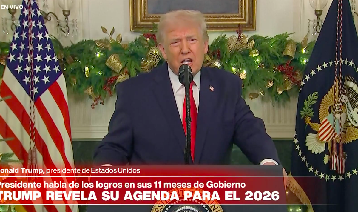 Washington, D.C., 17 diciembre de 2025.—El presidente de Estados Unidos, Donald Trump, se dirigió este miércoles por la noche a la nación desde la Casa Blanca para defender sus políticas en materia económica e inmigratoria, al tiempo que lanzó duros ataques contra la Administración de su antecesor, el demócrata Joe Biden, en un discurso marcado por afirmaciones controvertidas y cifras cuestionadas por analistas.