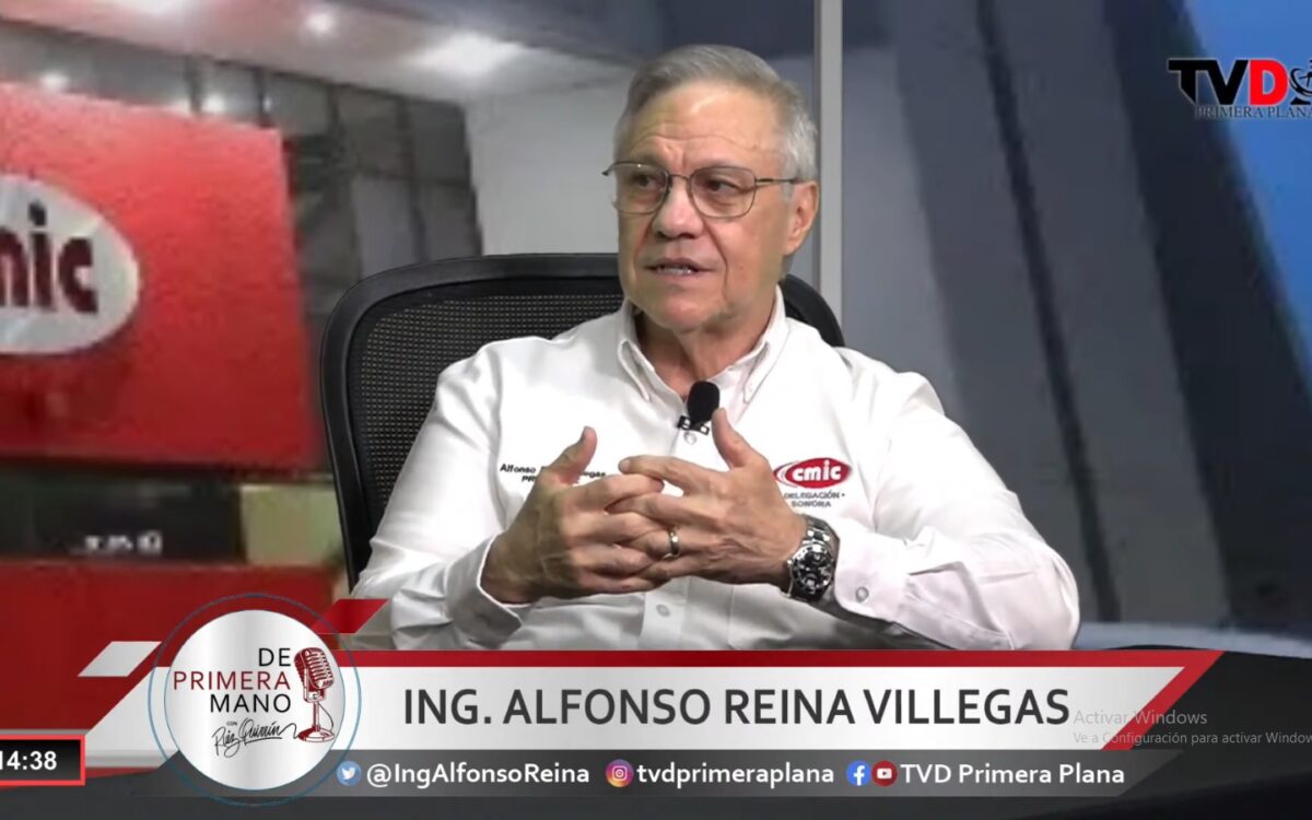 Alfonso Reina, presidente de CMIC en Sonora, durante entrevista para el programa “De Primera Mano” con Ruiz Quirrín en “TVD Primera Plana”.